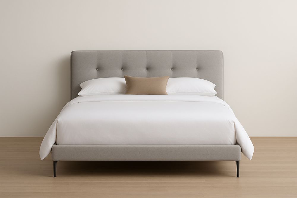 Łóżko tapicerowane z tkaniny poliestrowej, szare, 210 × 160 × 100 cm, bez materaca i poduszek