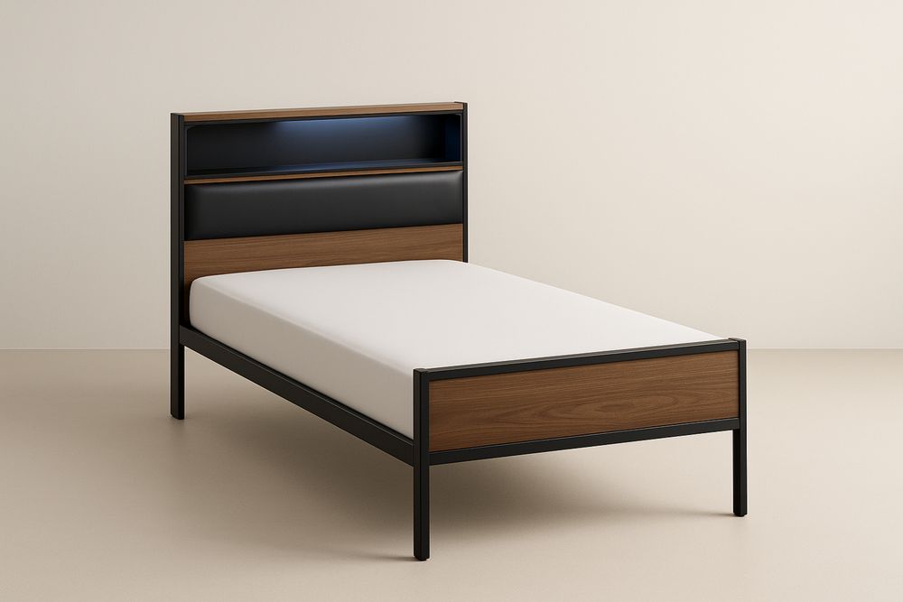 Łóżko pojedyncze metalowo-drewniane czarno-brązowe 200x90 ×100cm