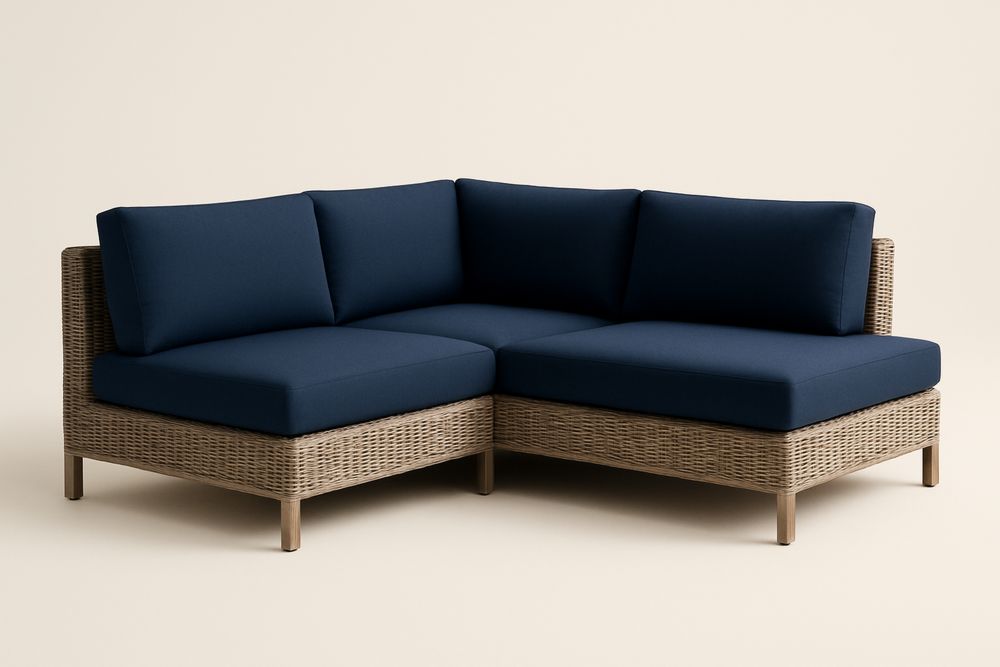 Narożnik ogrodowy rattanowy z poduszkami granatowymi 220cm