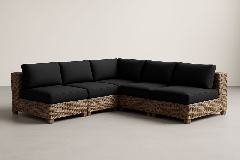 Narożnik z technorattanu czarny z poduszkami poliestrowymi